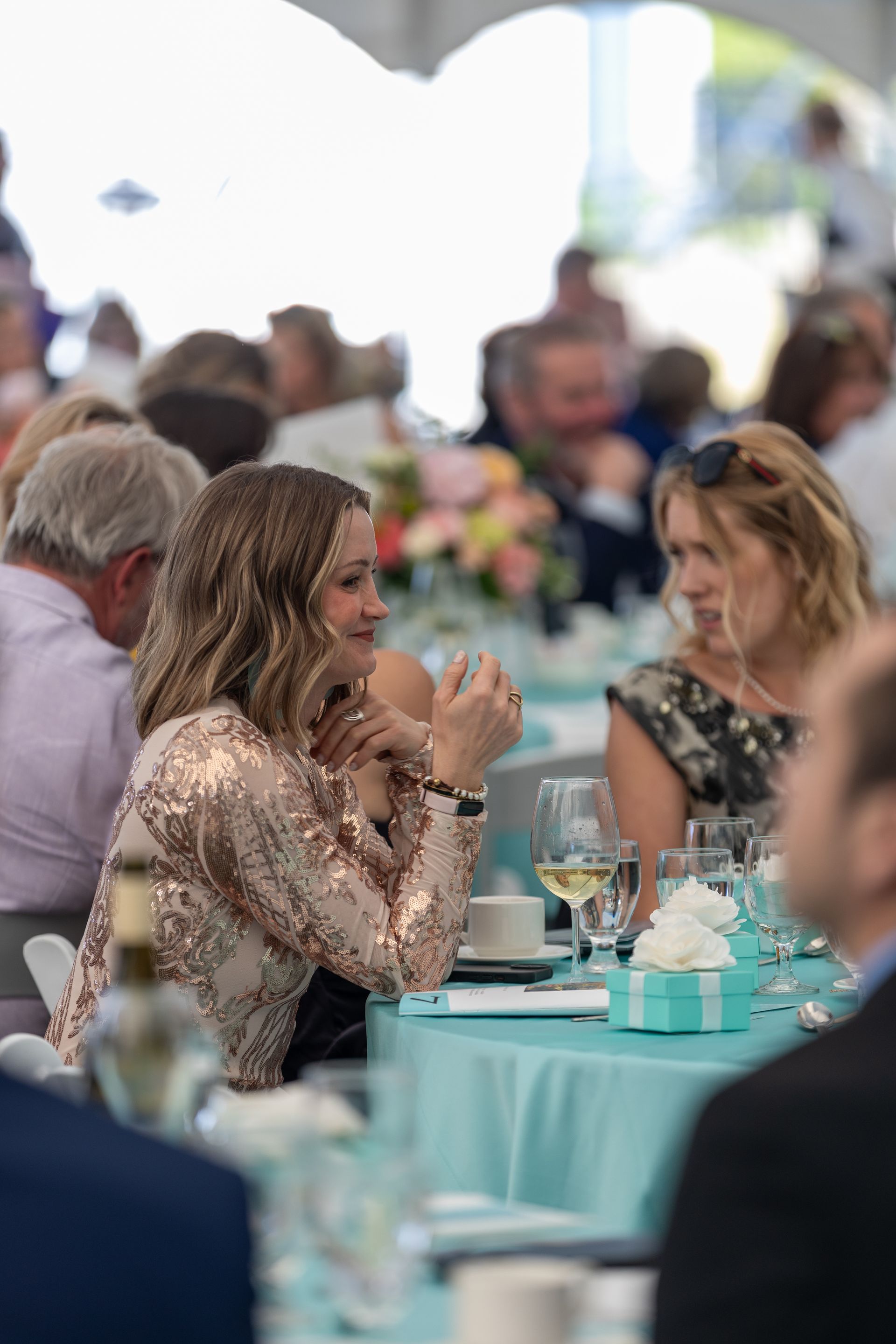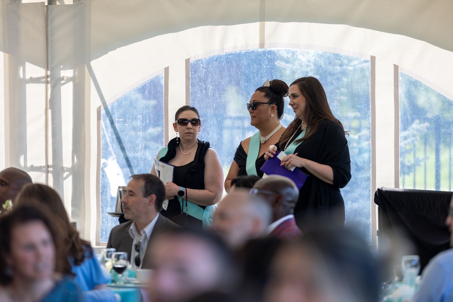 glamour — sleek gowns, sharp suits, and radiant jewels. Don your finest diamonds, pearls, and a hint of Tiffany blue to sparkle all night.